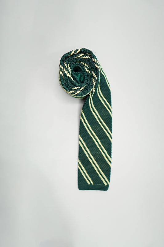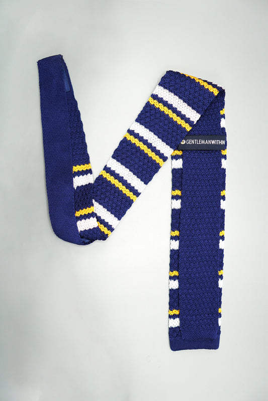 Paris Silk Knit Pointed Tip Tie in Navy and Yellow